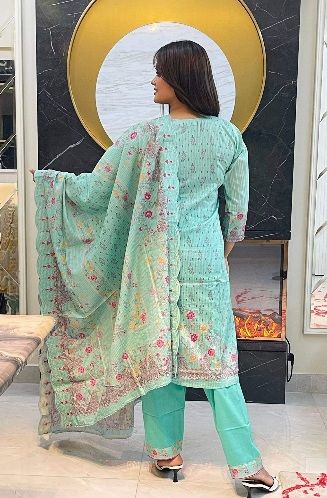 এটি আমাদের একমাত্র ডিজাইন, যা আপনি আর কোথাও পাবেন না। বাংলাদেশে কেবল Moody Fashion Shop-এ পাওয়া যায় আমাদের নিজস্ব ডিজাইন করা থ্রি পিস কালেকশন।