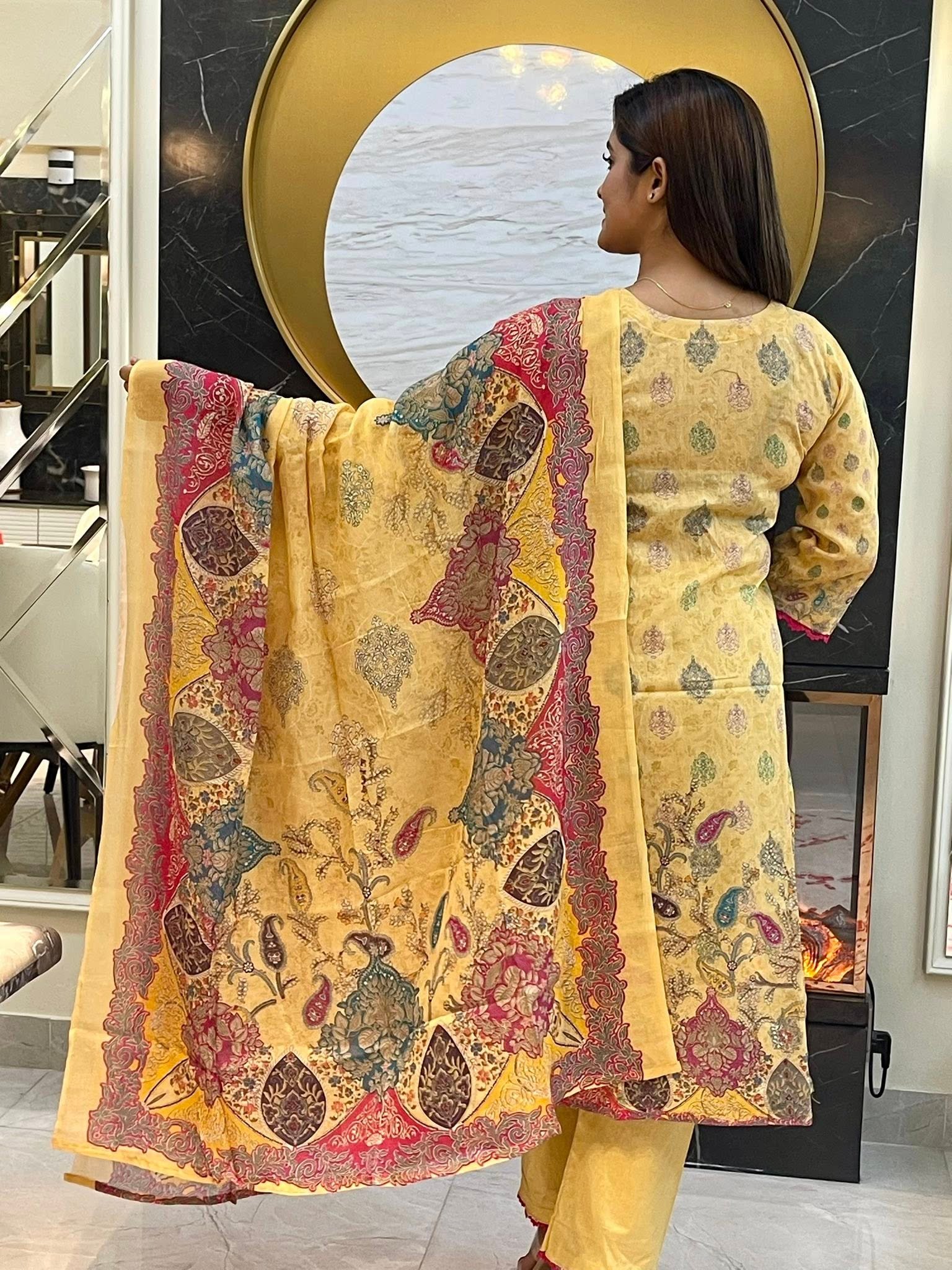আমাদের অরিজিনাল সাদাবাহার থ্রি পিস কালেকশন এক নতুন মাত্রা যোগ করবে আপনার ফ্যাশন স্টাইলে। এই কালেকশনে রয়েছে তিনটি অপরিহার্য উপাদান পাজামা, ওড়না, এবং কামিজ যা একত্রে পরিধান করলে আপনাকে দেবে ঐতিহ্য এবং আধুনিকতার এক সাশ্রয়ী মিশ্রণ।