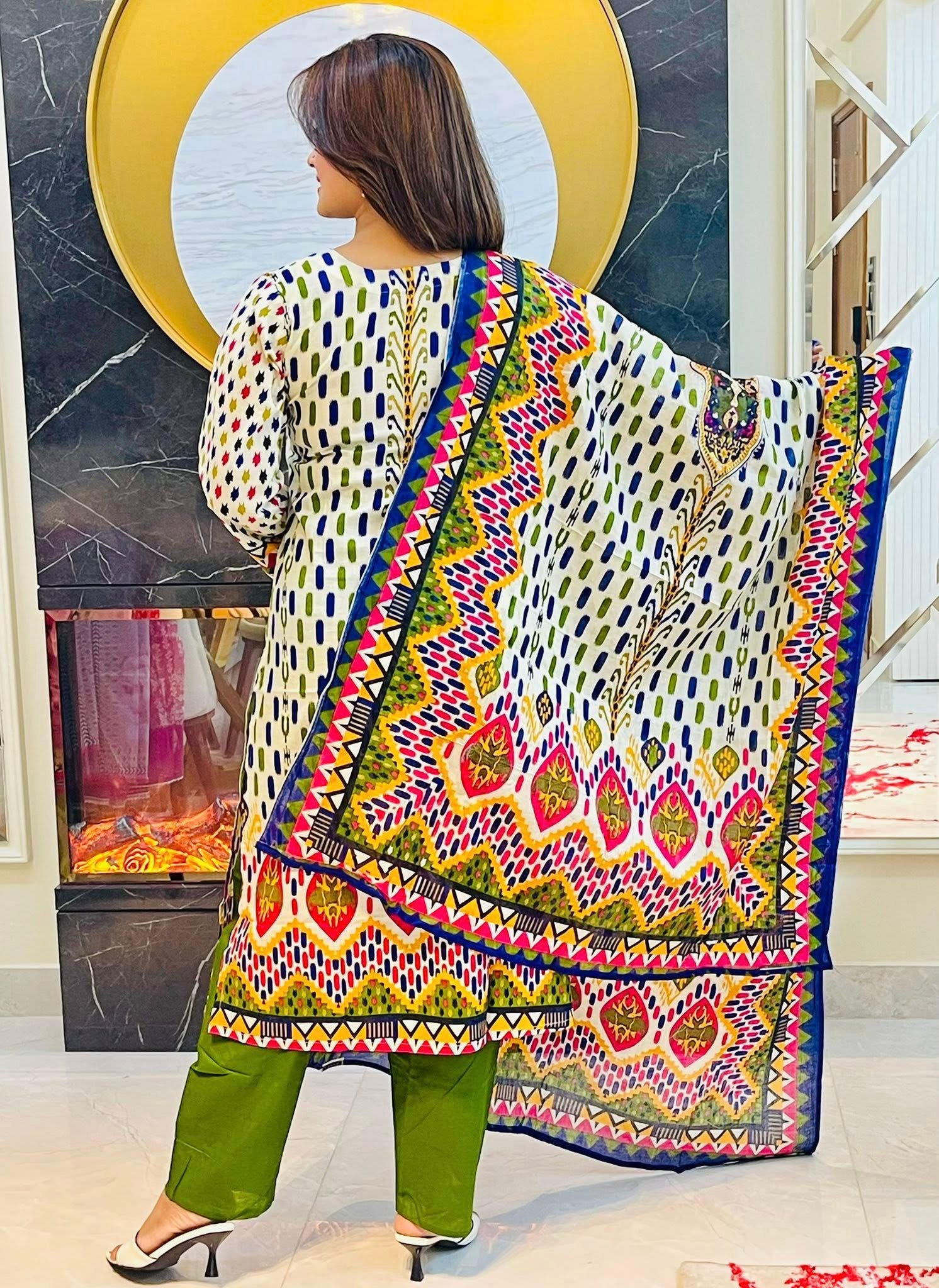 এটি আমাদের একমাত্র ডিজাইন, যা আপনি আর কোথাও পাবেন না। বাংলাদেশে কেবল Moody Fashion Shop-এ পাওয়া যায় আমাদের নিজস্ব ডিজাইন করা থ্রি পিস কালেকশন।
