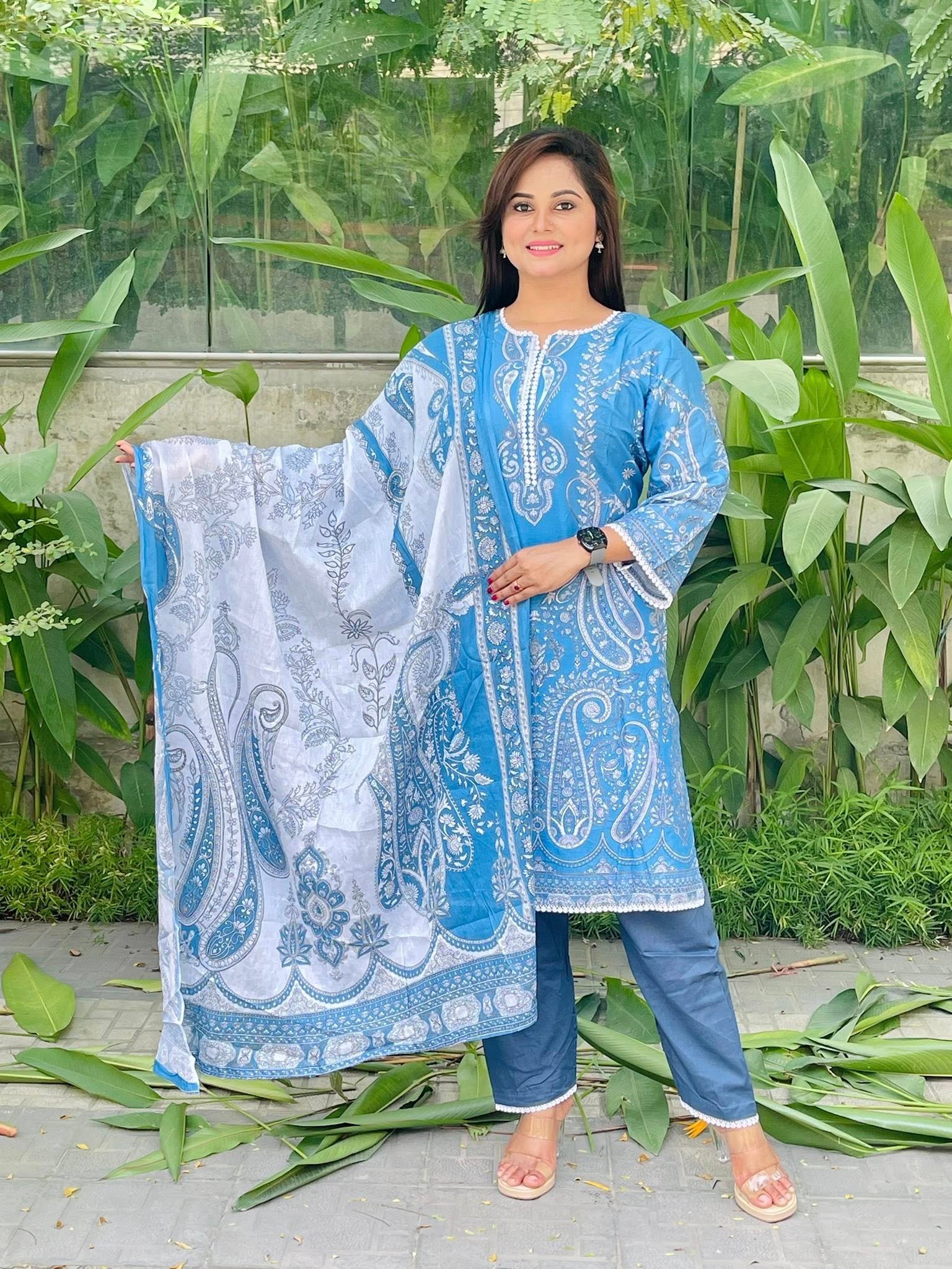 আজই আপনার পছন্দের থ্রি পিস সংগ্রহ করুন এবং উপভোগ করুন এক অনন্য স্টাইল ও আরামের সংমিশ্রণ।