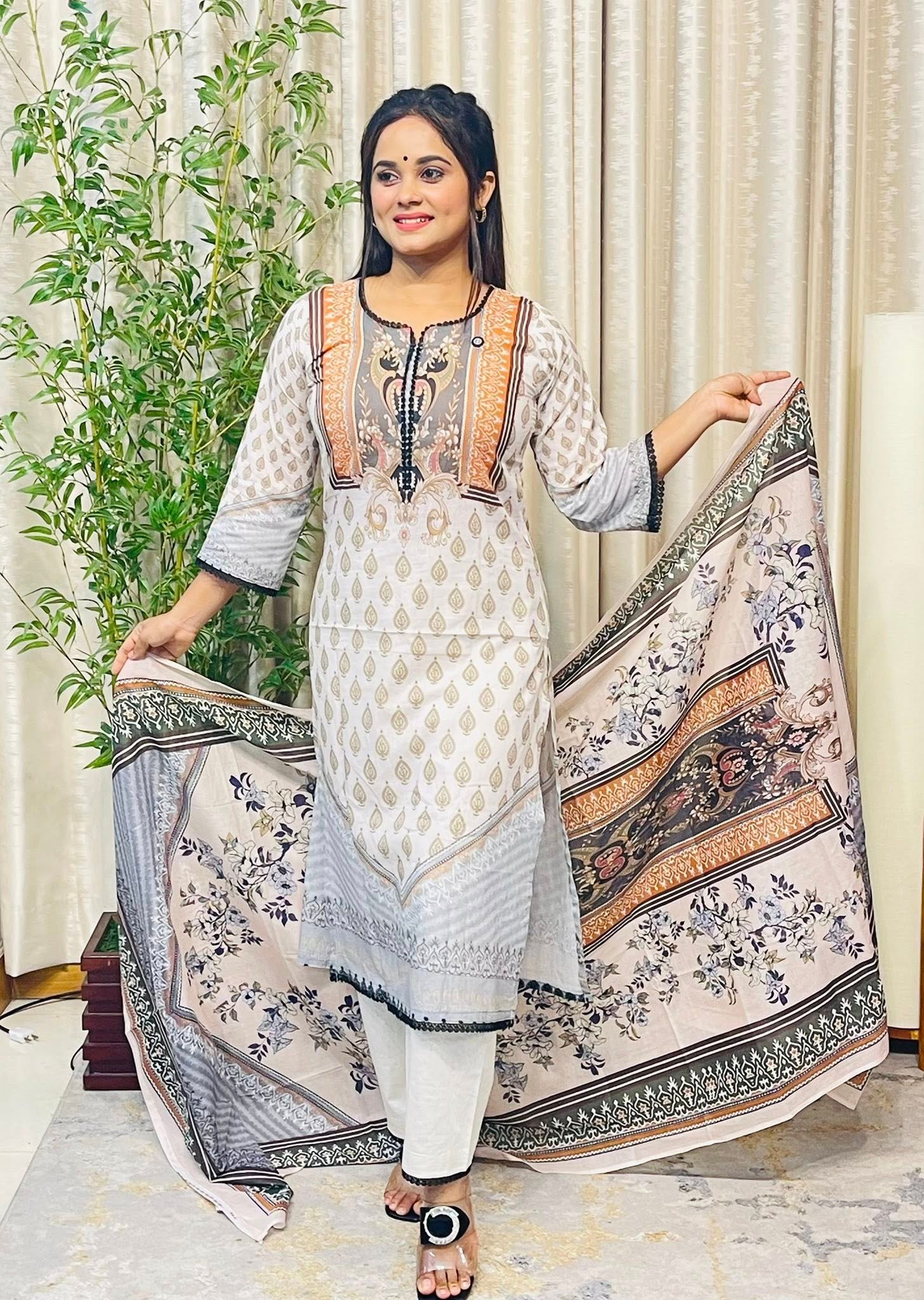 আমাদের অরিজিনাল সাদাবাহার থ্রি পিস কালেকশন এক নতুন মাত্রা যোগ করবে আপনার ফ্যাশন স্টাইলে। এই কালেকশনে রয়েছে তিনটি অপরিহার্য উপাদান — পাজামা, ওড়না, এবং কামিজ — যা একত্রে পরিধান করলে আপনাকে দেবে ঐতিহ্য এবং আধুনিকতার এক সাশ্রয়ী মিশ্রণ।
